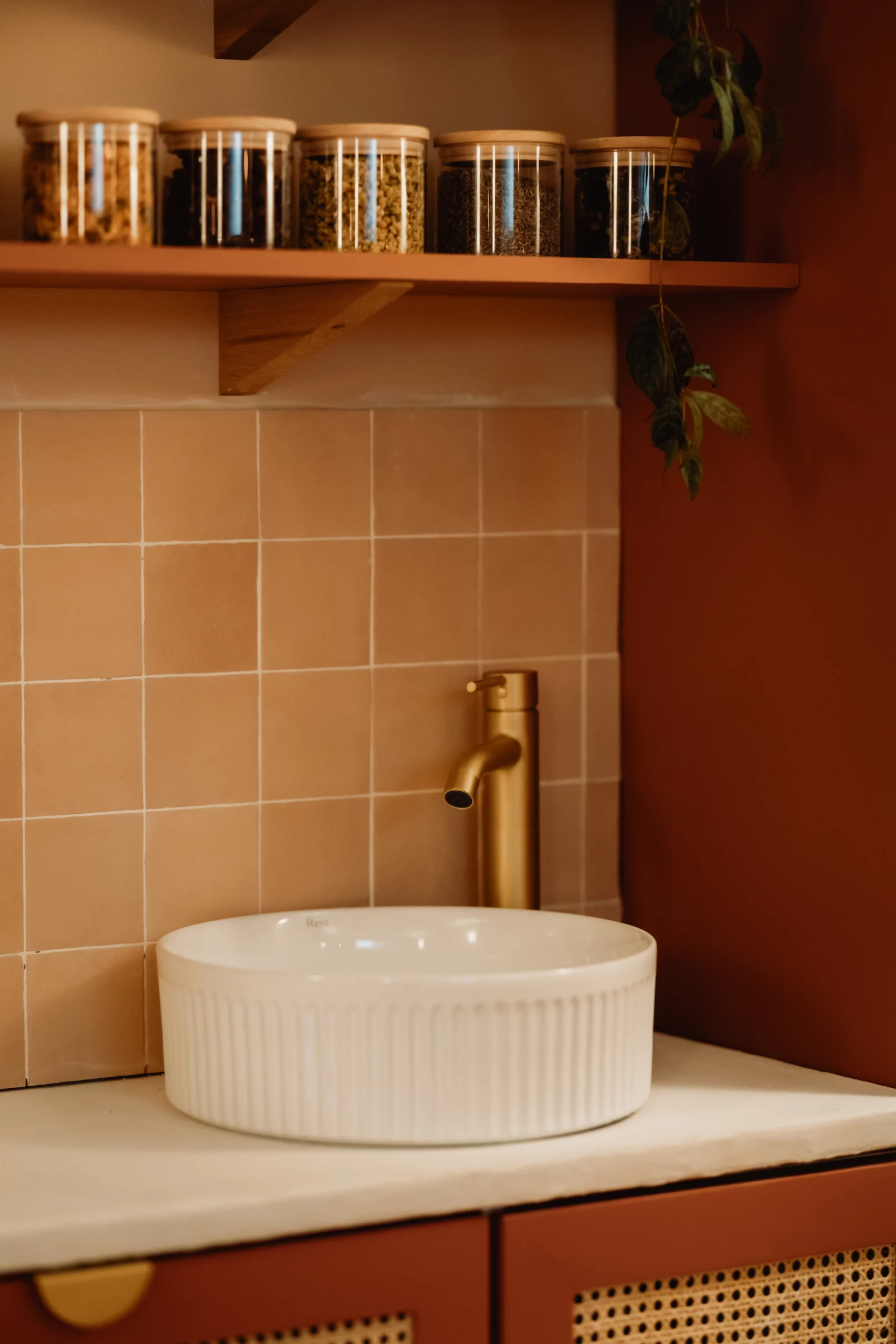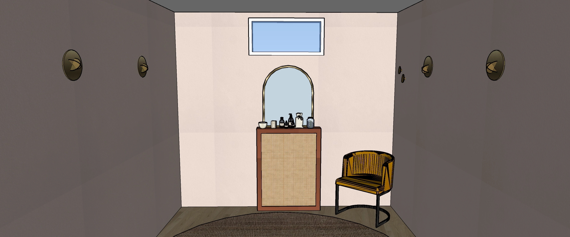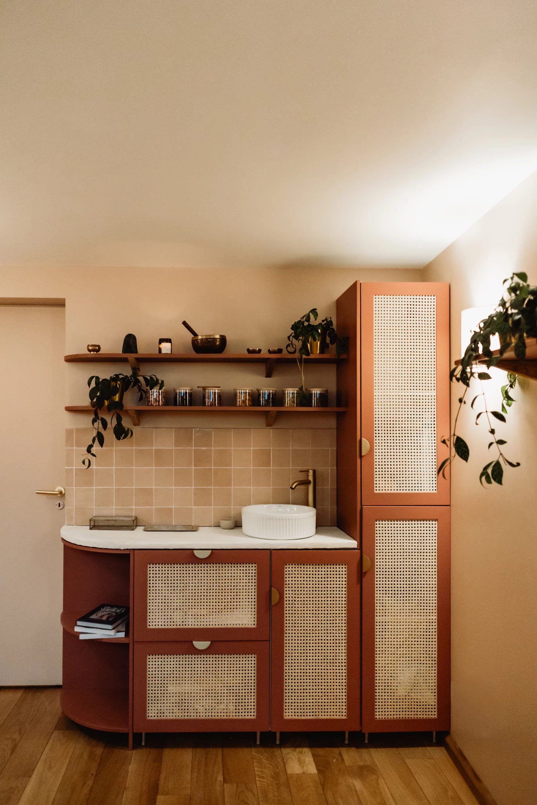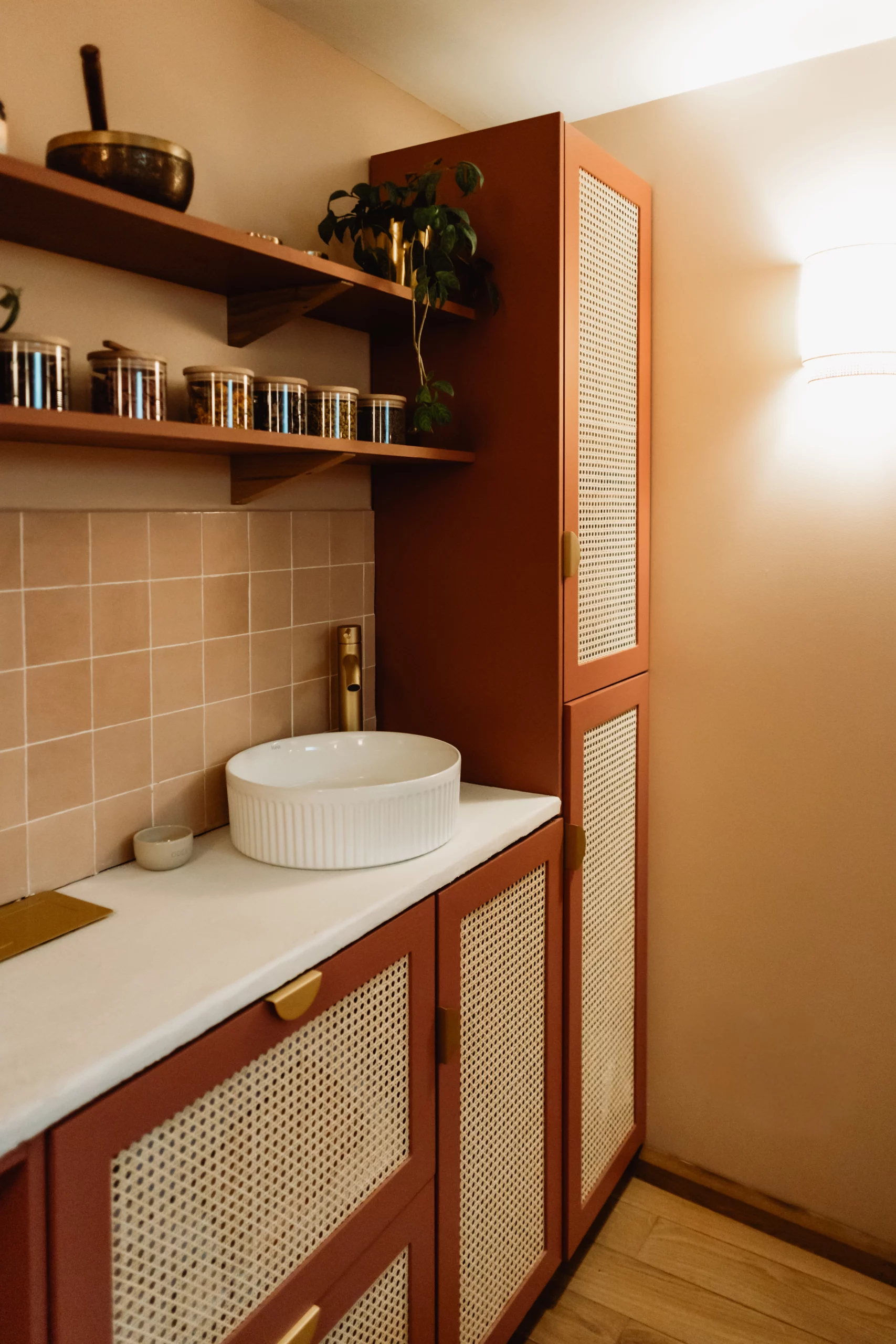 Dans son discours, il y avait cette pointe de féminité douce, cette chaleur naturelle… quelque chose qui m’a immédiatement évoqué l’ambiance des hammams et riads marocains : des couleurs qui réchauffent, rassurent, et évoquent un voyage sensoriel. Elle aimait le naturel, le bois, les textures authentiques. Et surtout, elle avait un véritable coup de cœur pour les nuances de rose et de terracotta. Ce mélange est devenu le fil conducteur du projet.