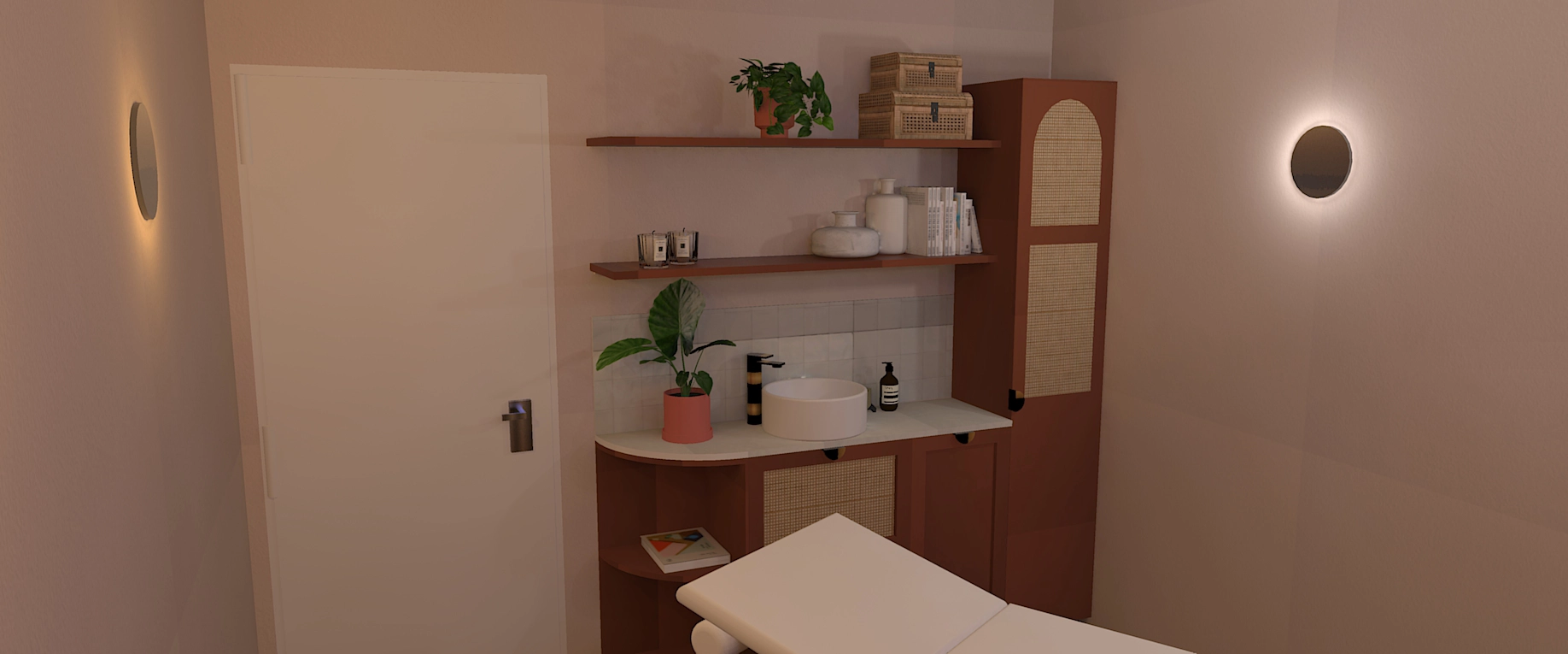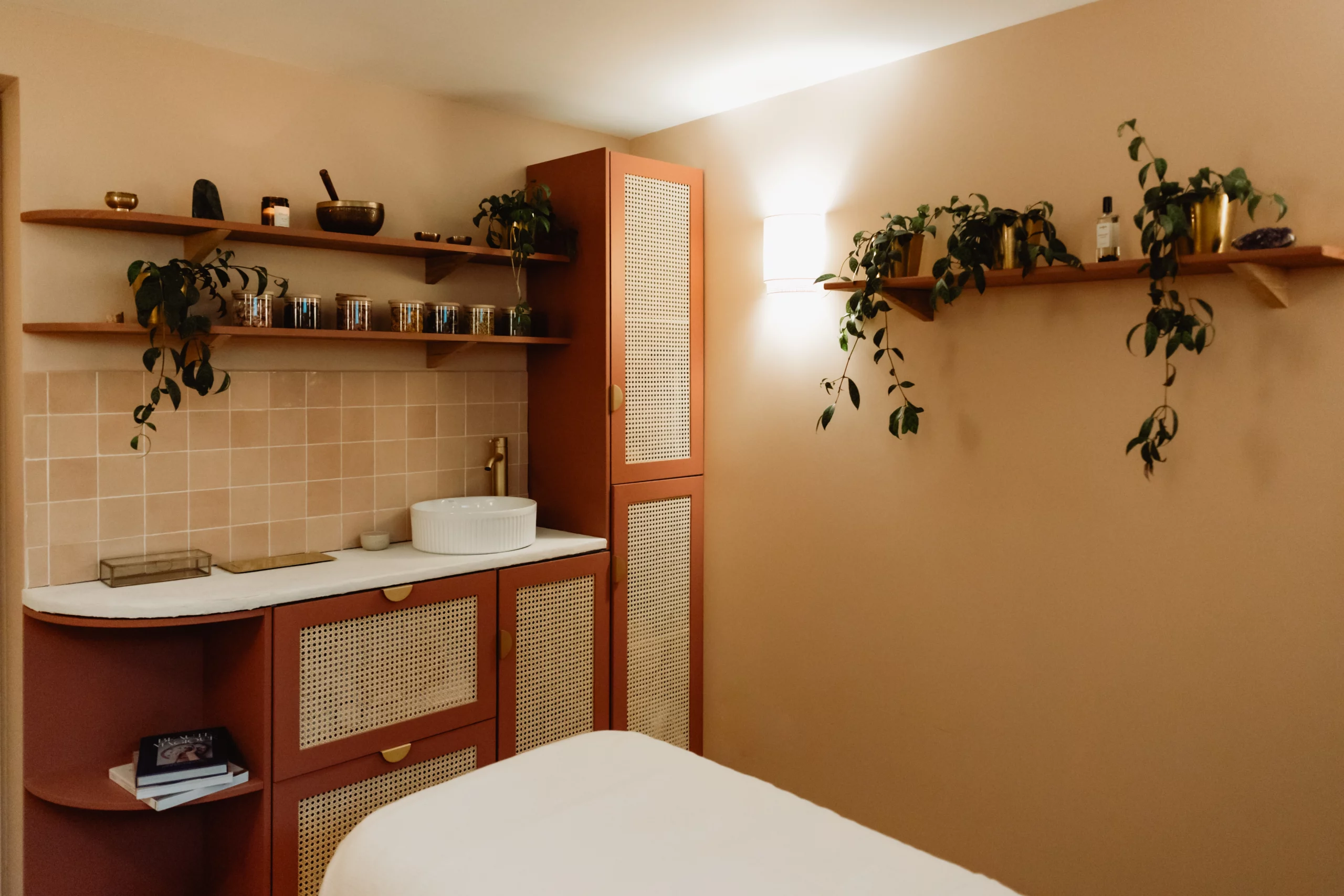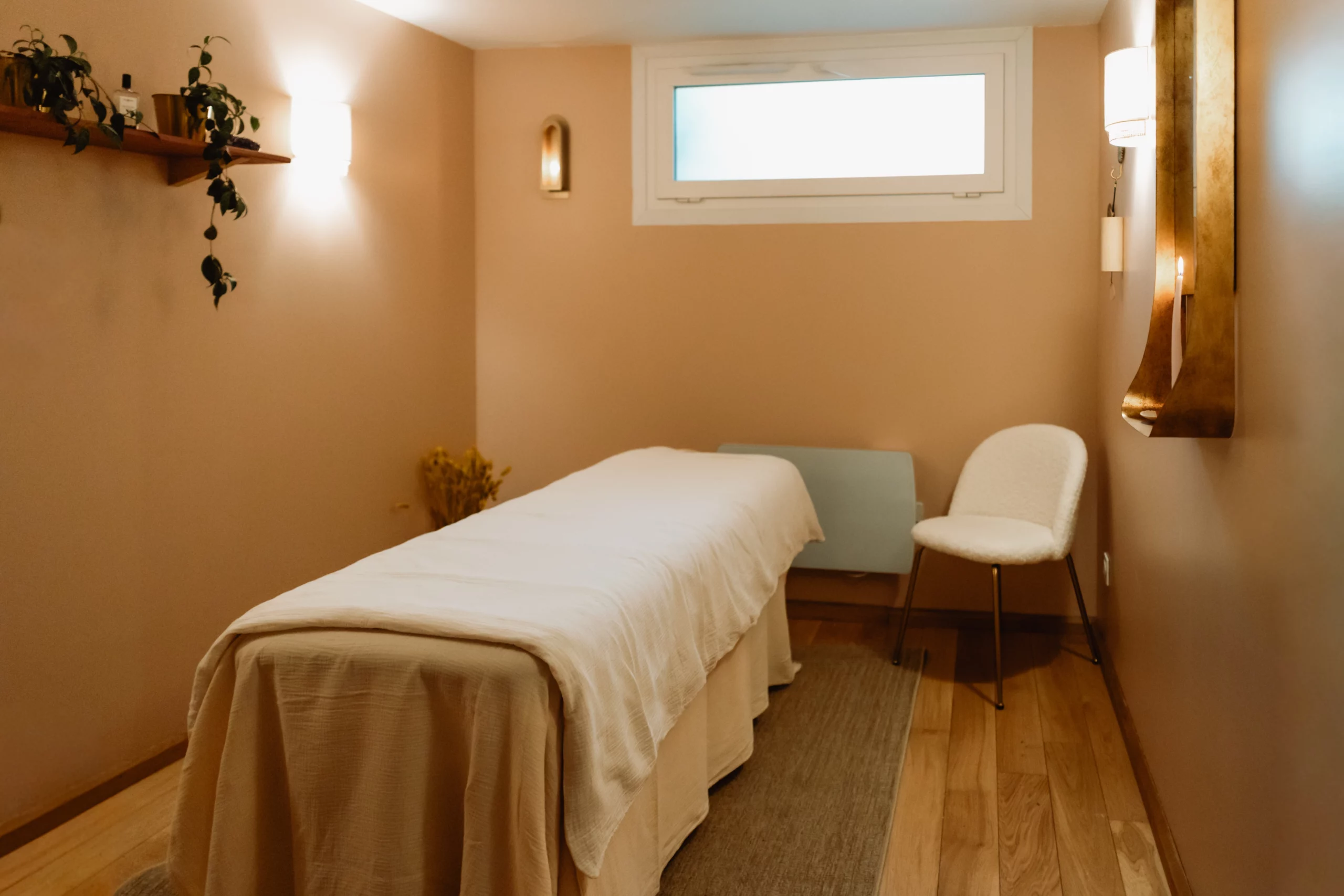 Ce que je voulais avant tout, c’était que les clientes se sentent dépaysées, accueillies dans un lieu où l’on peut enfin se déposer, respirer, et prendre soin de soi. Une bulle chaude et rassurante, à mille lieues de l’ambiance initiale.