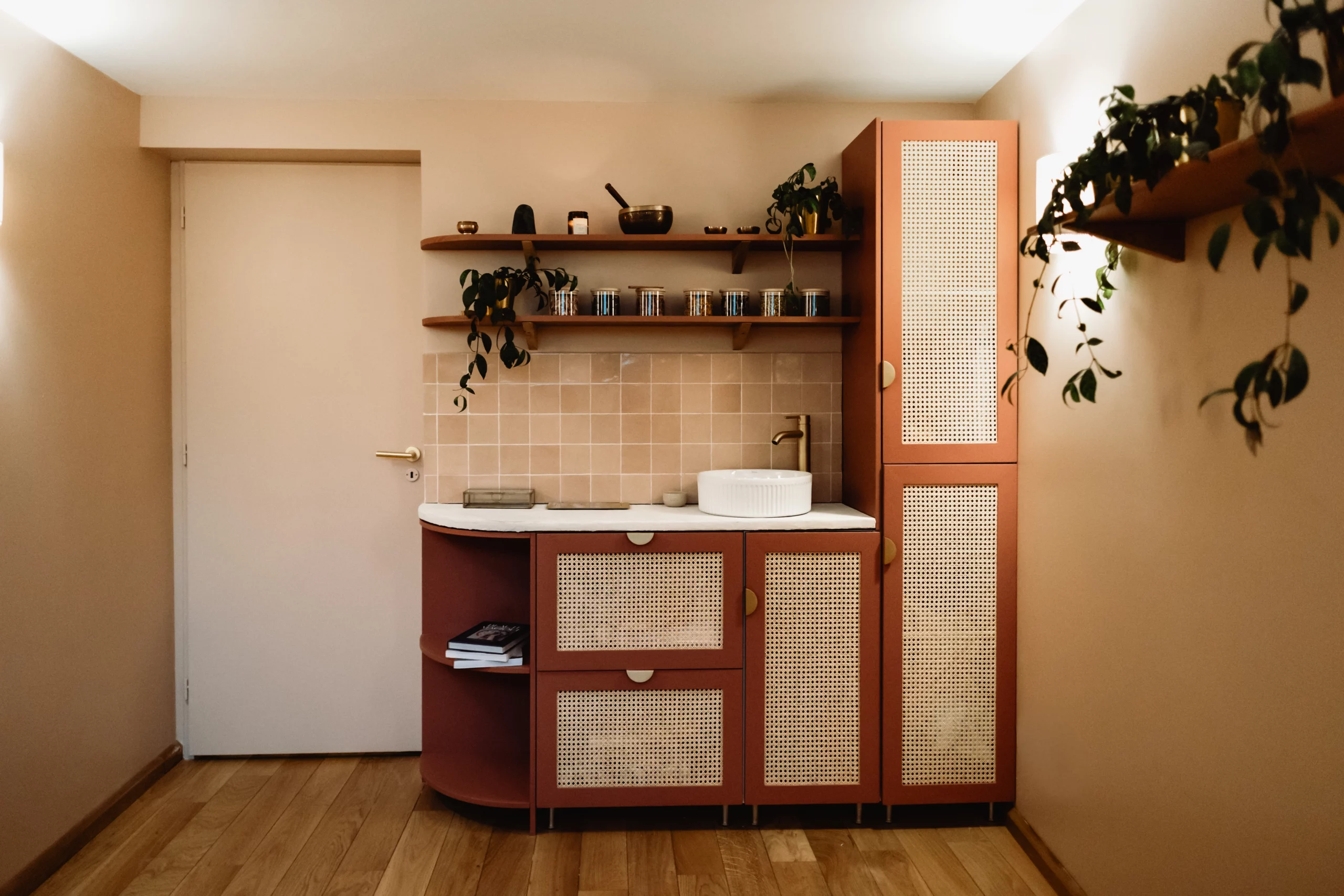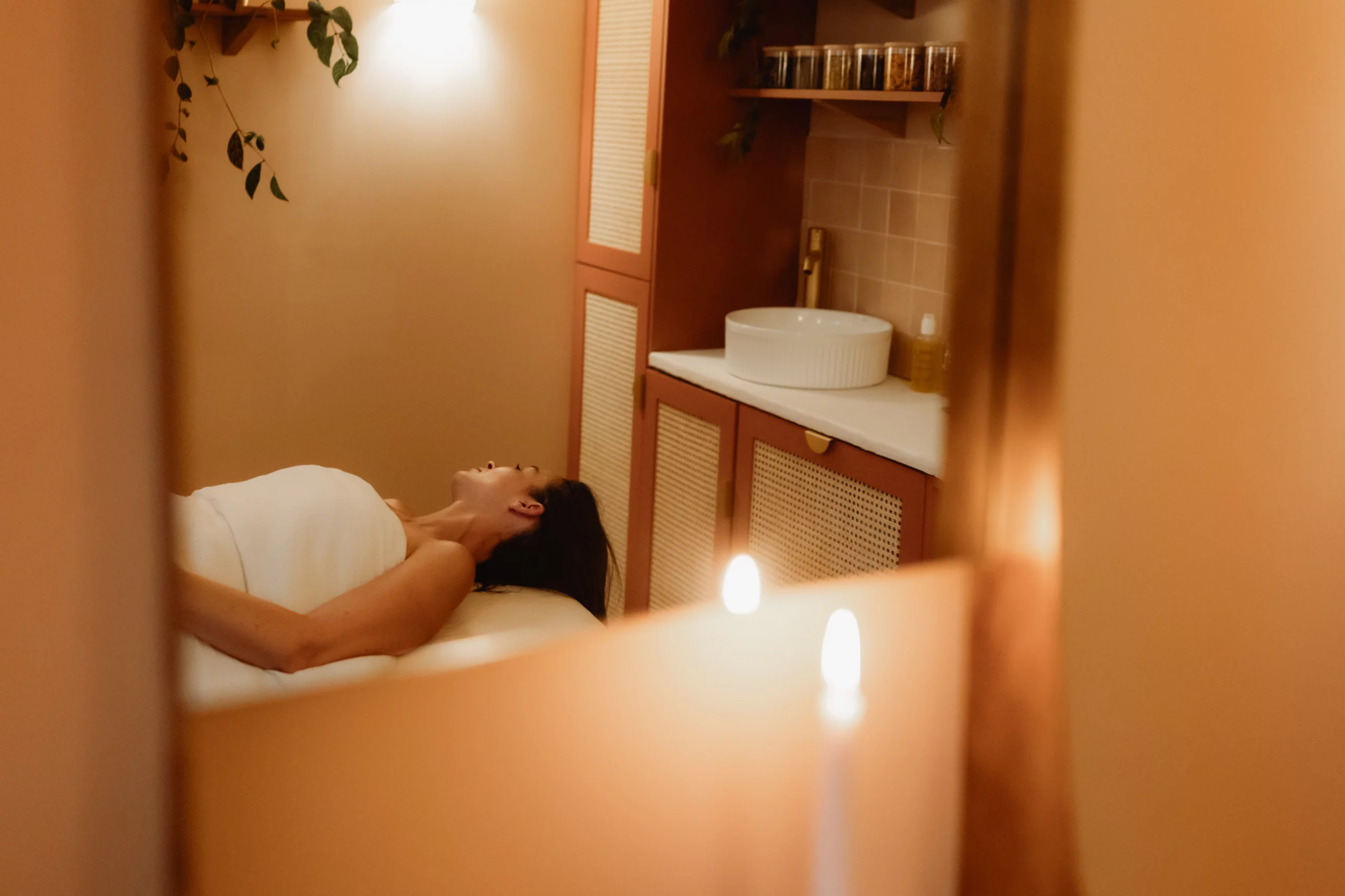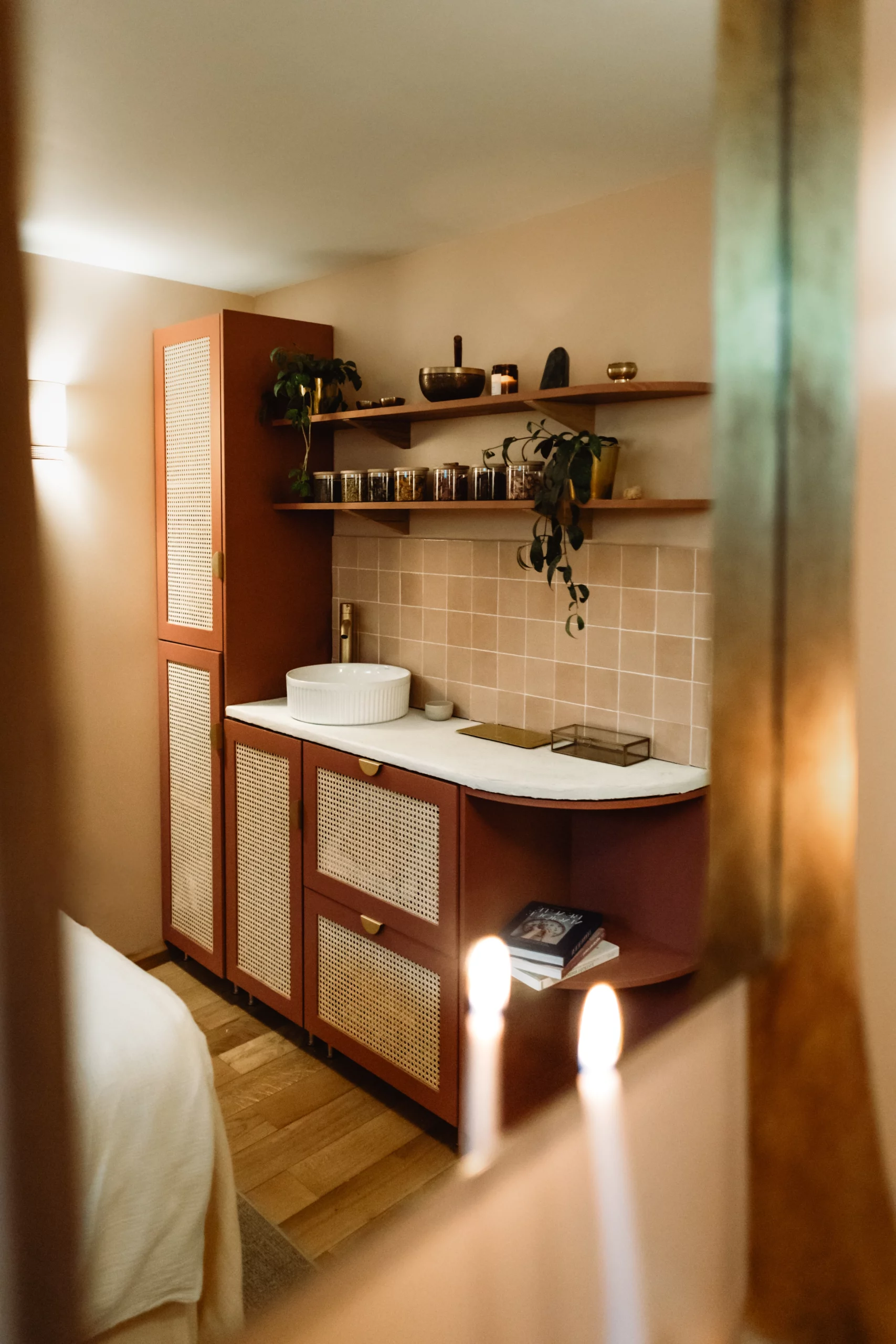 Ce que je voulais avant tout, c’était que les clientes se sentent dépaysées, accueillies dans un lieu où l’on peut enfin se déposer, respirer, et prendre soin de soi. Une bulle chaude et rassurante, à mille lieues de l’ambiance initiale.